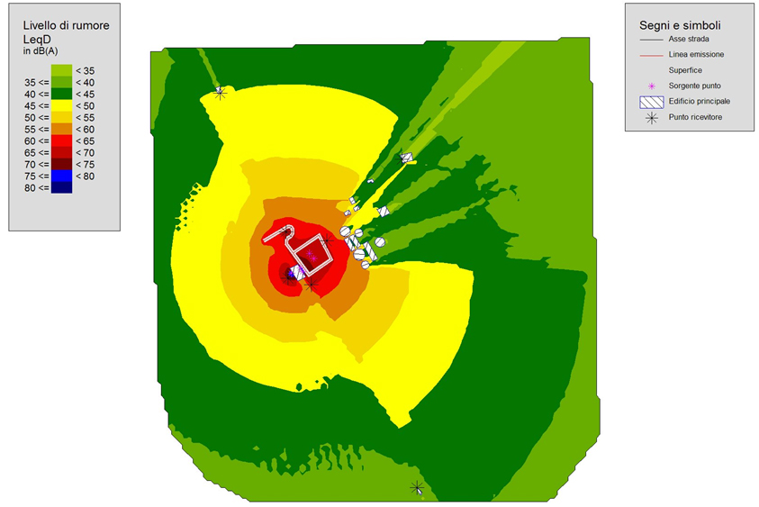 • Modellizzazione impatto acustico mediante sistema informatico SoundPlan